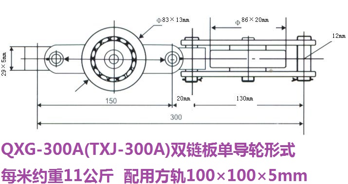 QXG(TXJ)-300型雙鏈板單導輪懸掛鏈條